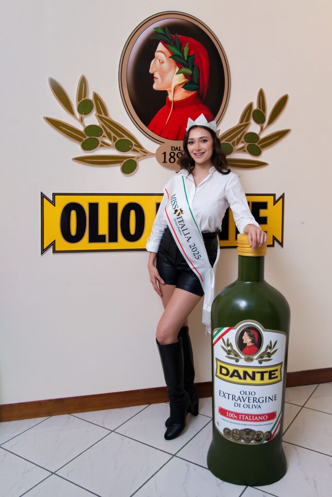 La partnership è stata sancita ieri quando Katia Buchicchio, la Miss in carica, ha visitato lo stabilimento dell’azienda a Montesarchio, in provincia di Benevento, un impianto che si estende su 50.000 metri quadrati nel cuore del Sannio (nella foto in alto Miss Italia 2025 insieme al Direttore Generale Olio Dante S.p.A., Carlo Bassano di Tufillo).